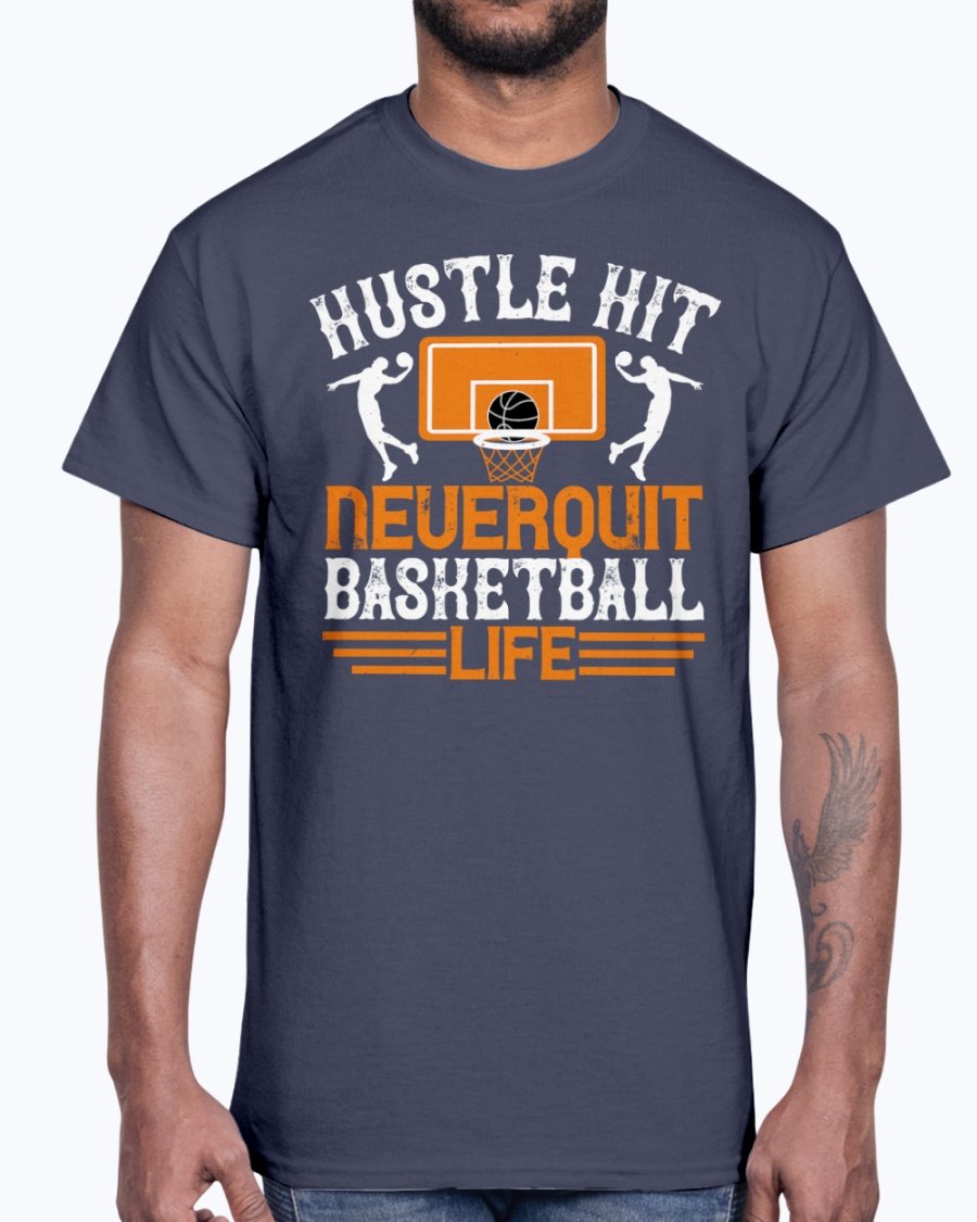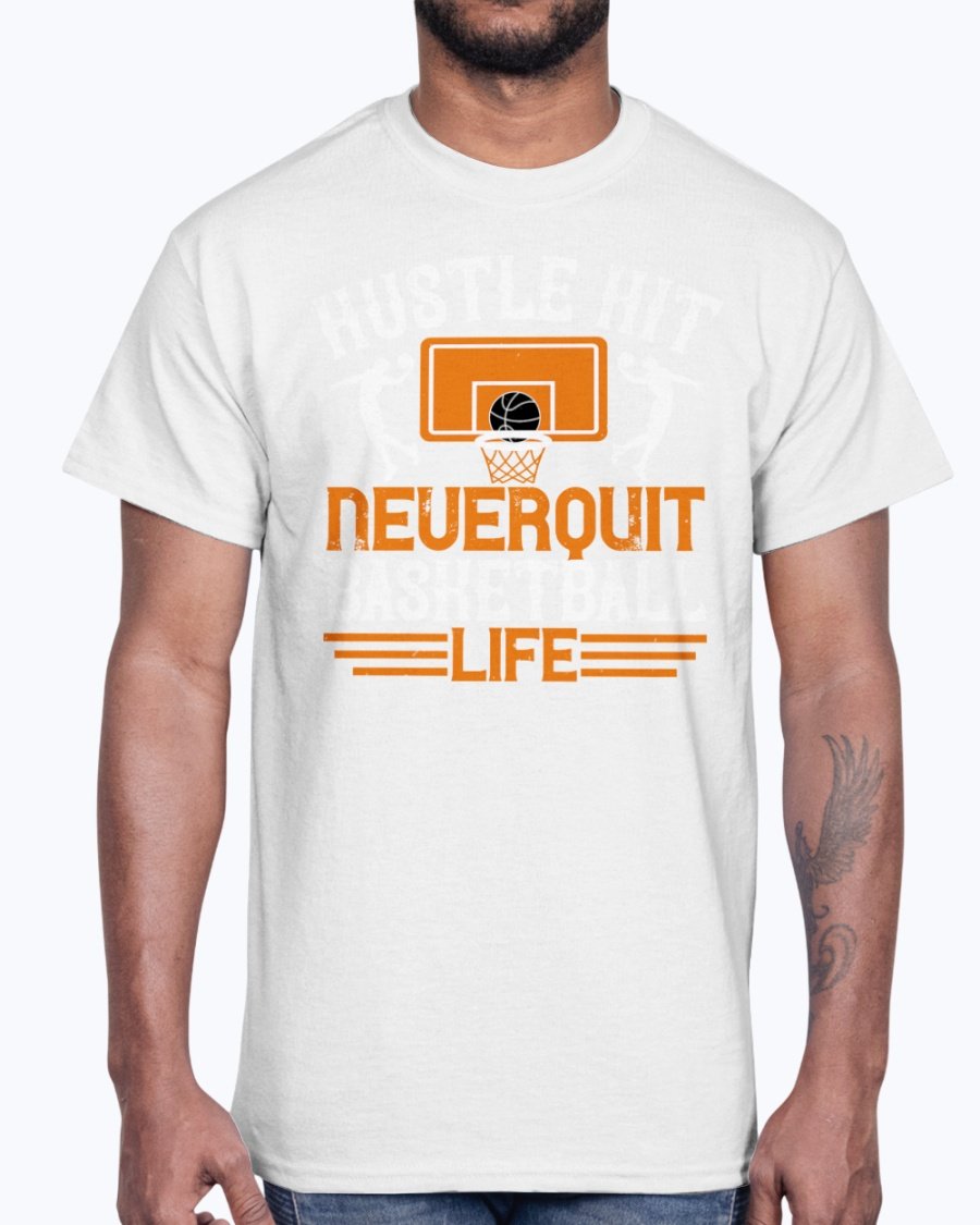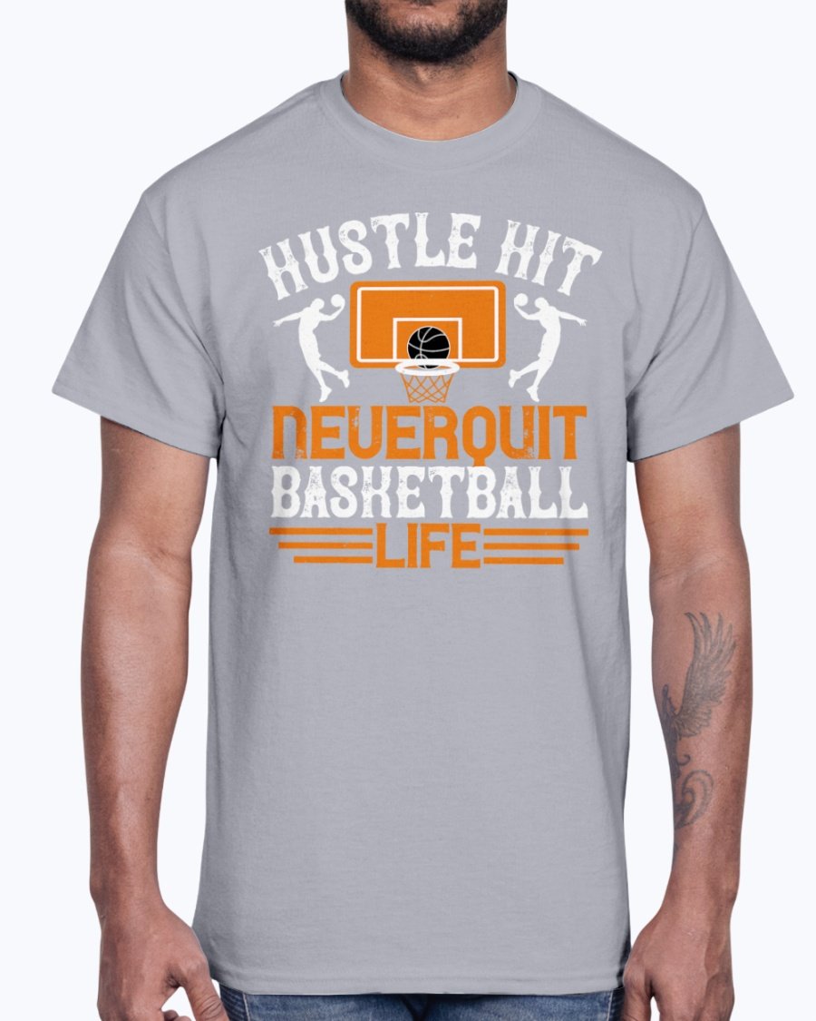 Hustle, hit. Never quit basketball life - Basketball - Cotton Tee