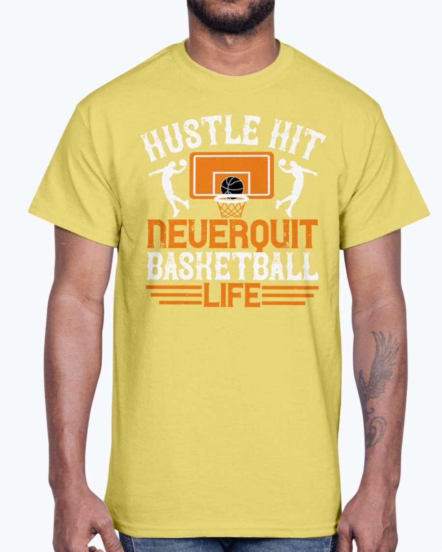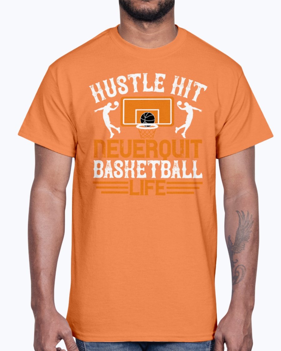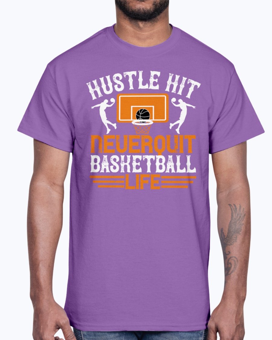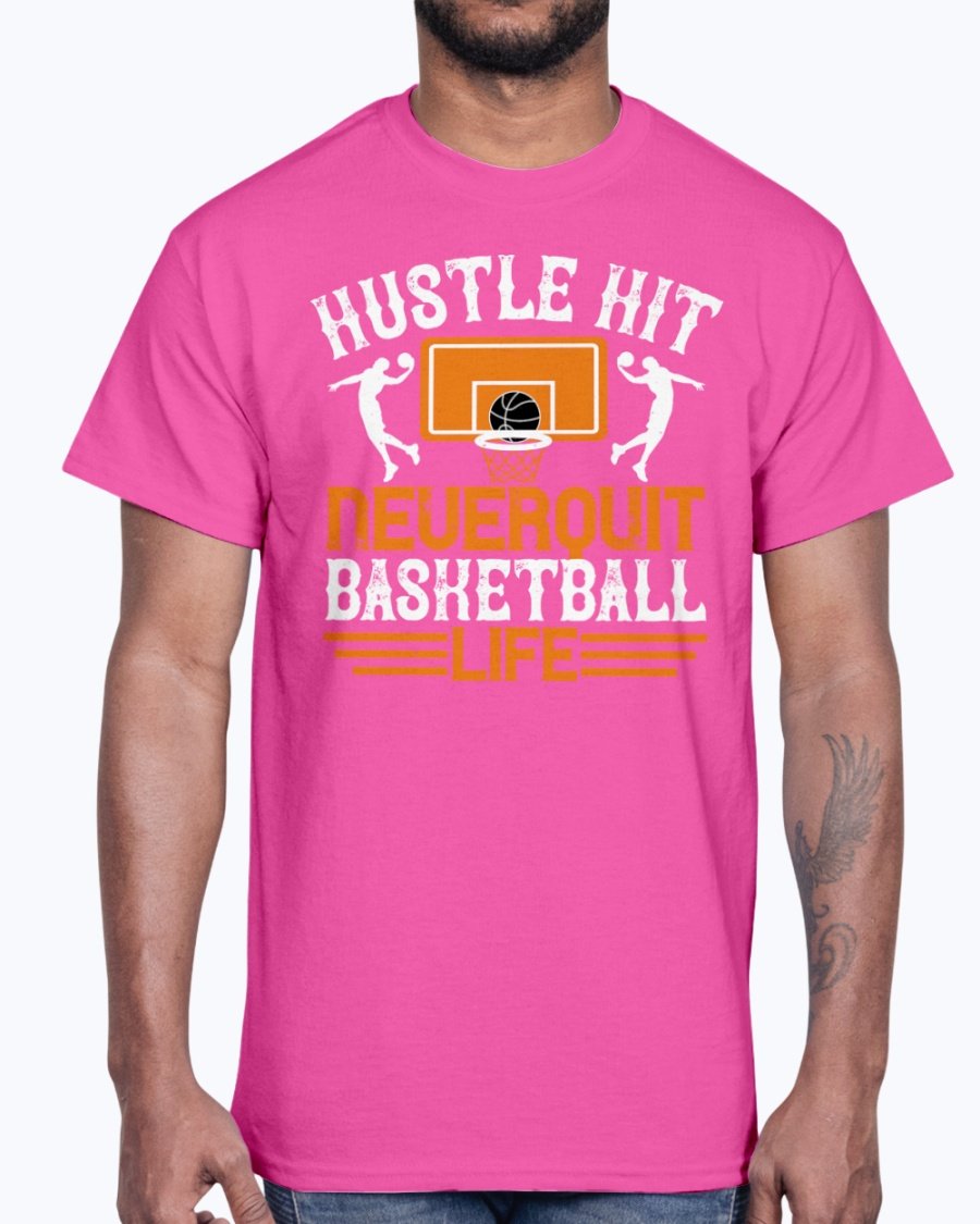 Hustle, hit. Never quit basketball life - Basketball - Cotton Tee