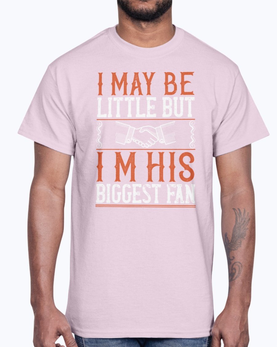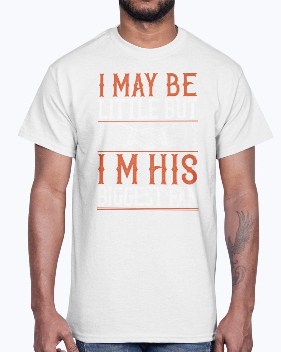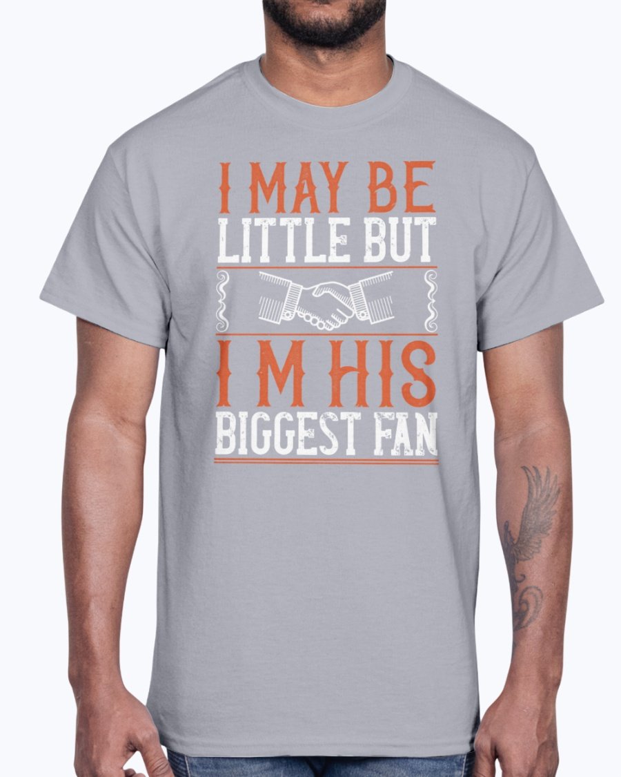 I may be little but i’m his biggest fan  - Basketball - Cotton Tee Note: There is a 2 - 4 day creation time, which may delay shipping.   6 oz.(US) 10 oz.(CA), 100% preshrunk cotton Ash Grey: 99/1 cotton/polyester Heather colors & Safety colors: 50/50 cotton/polyester Antique colors & Sport...