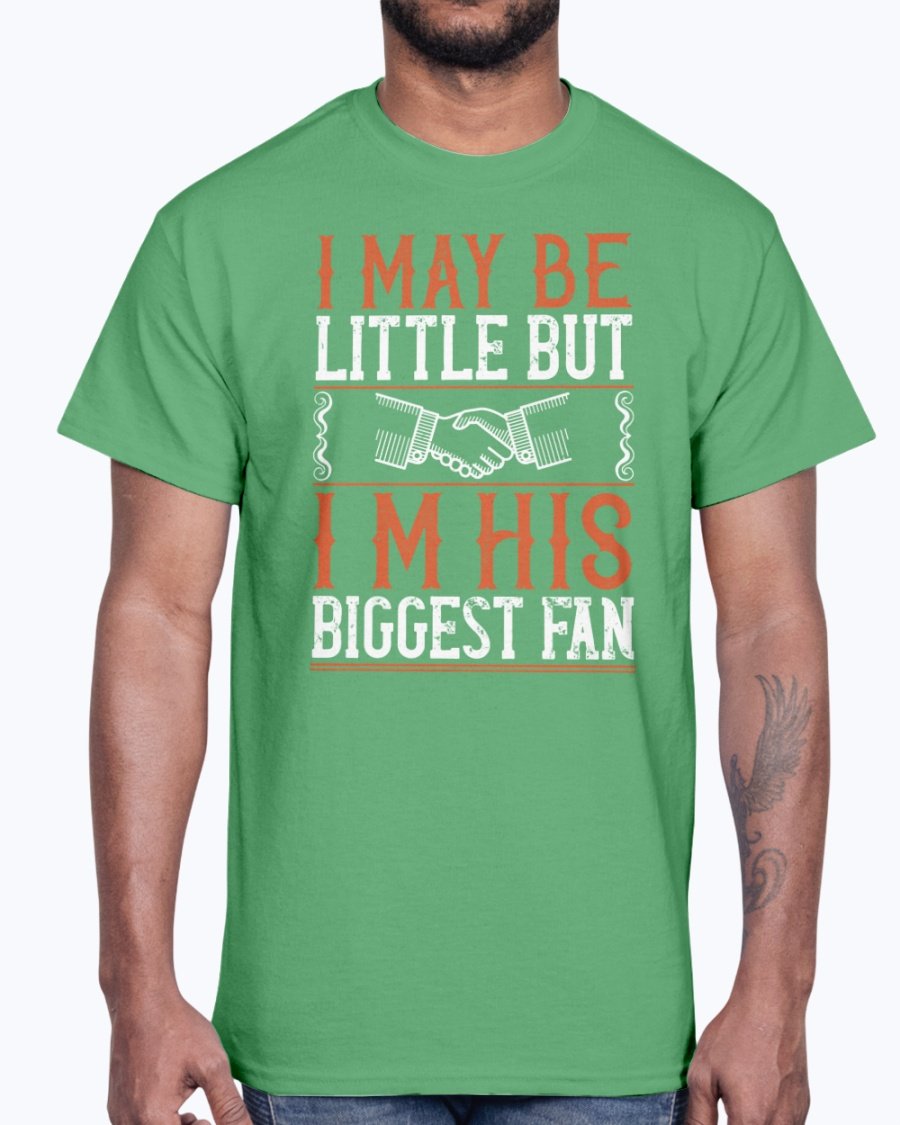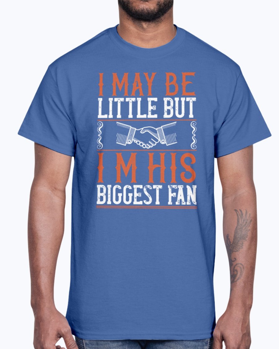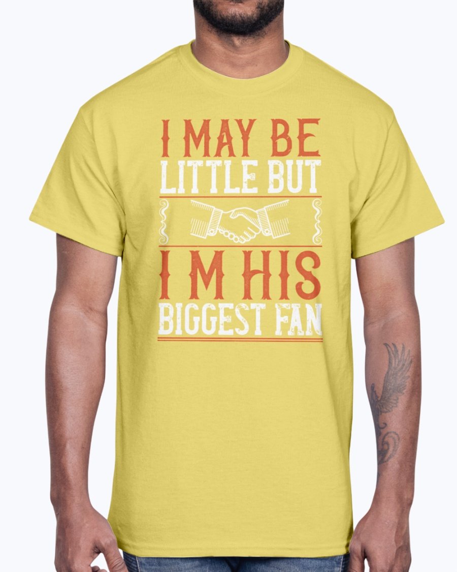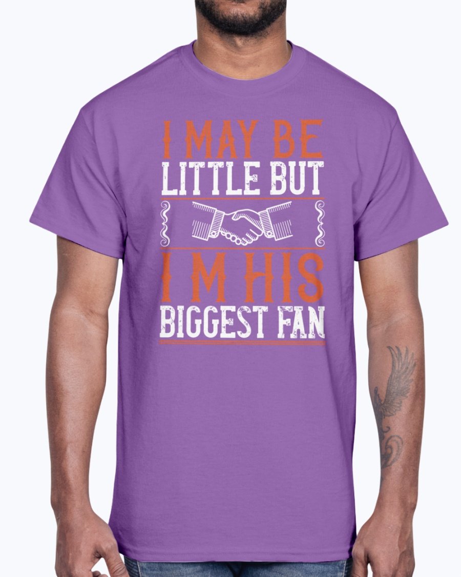 I may be little but i’m his biggest fan  - Basketball - Cotton Tee Note: There is a 2 - 4 day creation time, which may delay shipping.   6 oz.(US) 10 oz.(CA), 100% preshrunk cotton Ash Grey: 99/1 cotton/polyester Heather colors & Safety colors: 50/50 cotton/polyester Antique colors & Sport...