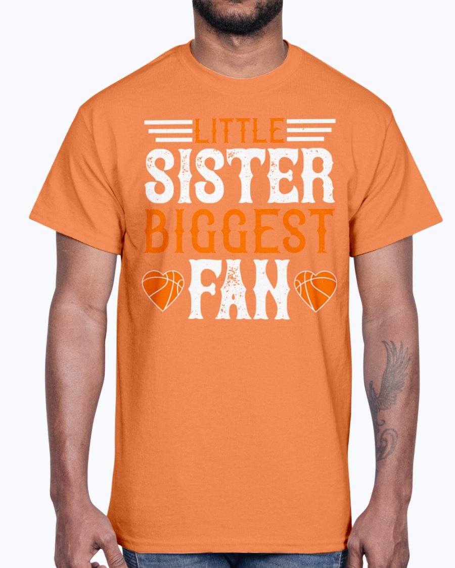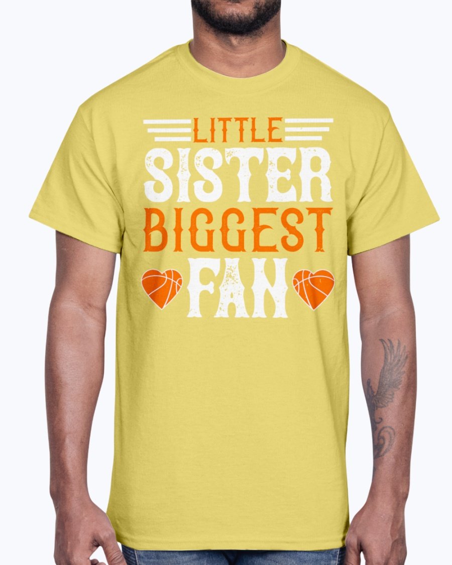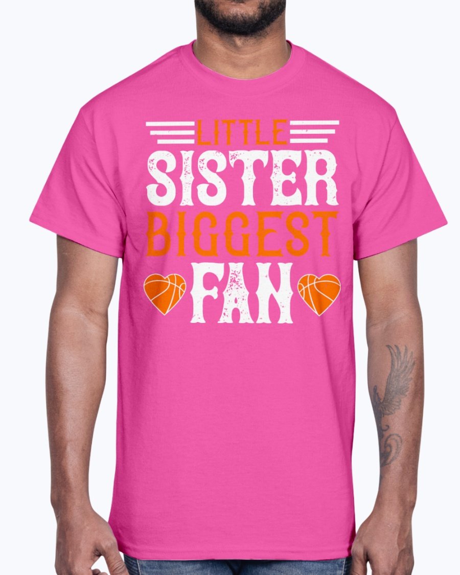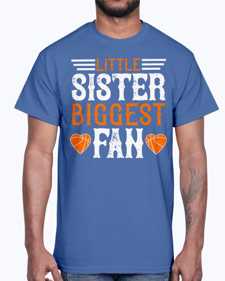 Little sister, biggest fan  - Basketball - Cotton Tee Note: There is a 2 - 4 day creation time, which may delay shipping.   6 oz.(US) 10 oz.(CA), 100% preshrunk cotton Ash Grey: 99/1 cotton/polyester Heather colors & Safety colors: 50/50 cotton/polyester Antique colors & Sport Grey: 90/10 cotton/polyester Classic fit...