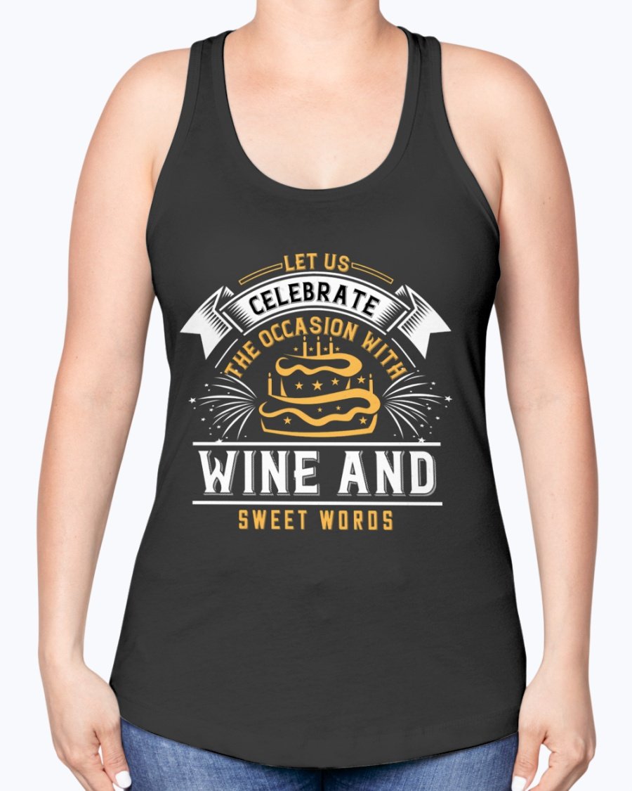 Let us celebrate the occasion with wine and sweet words- Birthday -Racerback Tank