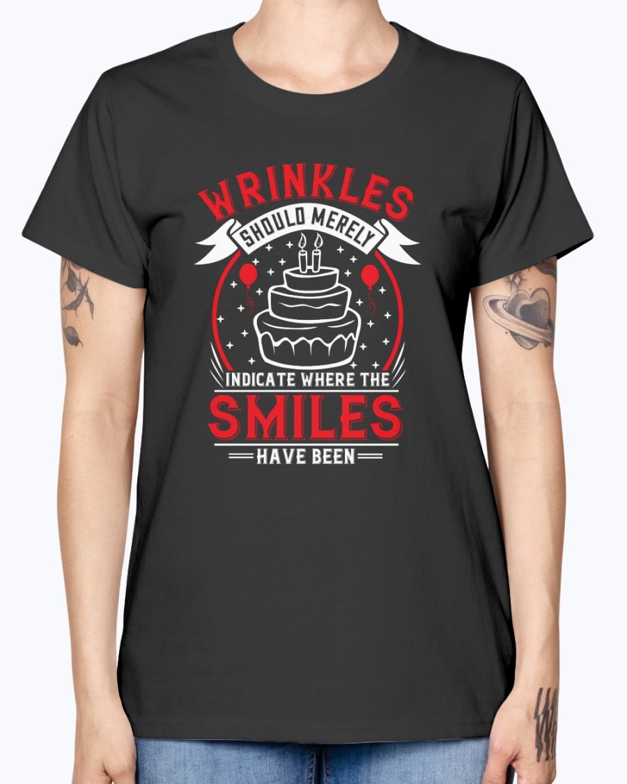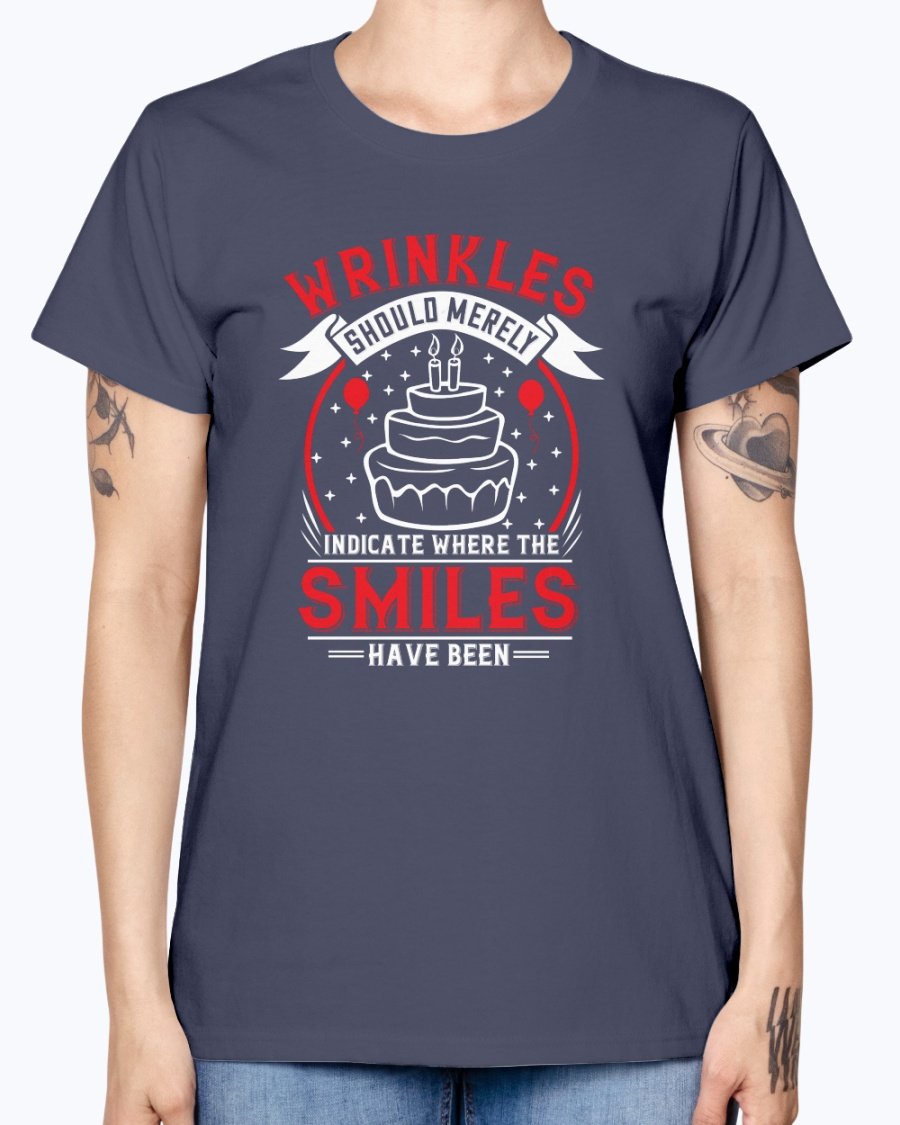 Wrinkles should merely indicate where the smiles have been- Birthday - Missy T-Shirt