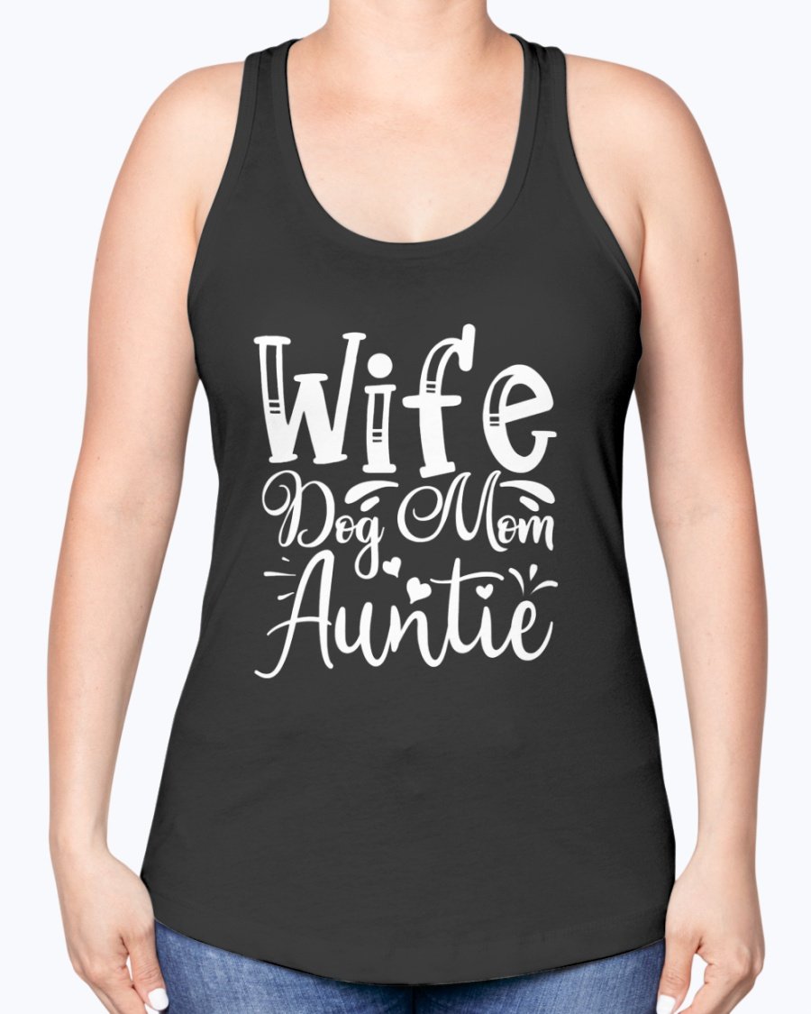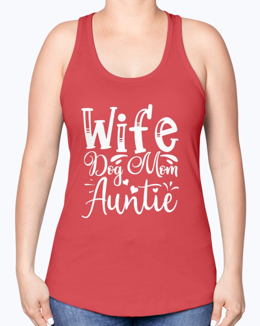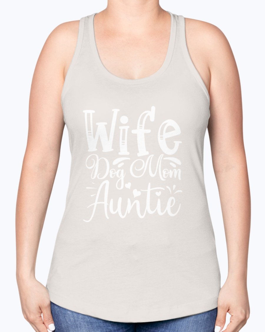 Wife, Dog Mom, Auntie-- Aunt -Racerback Tank Contoured fit, machine washable, cotton blend