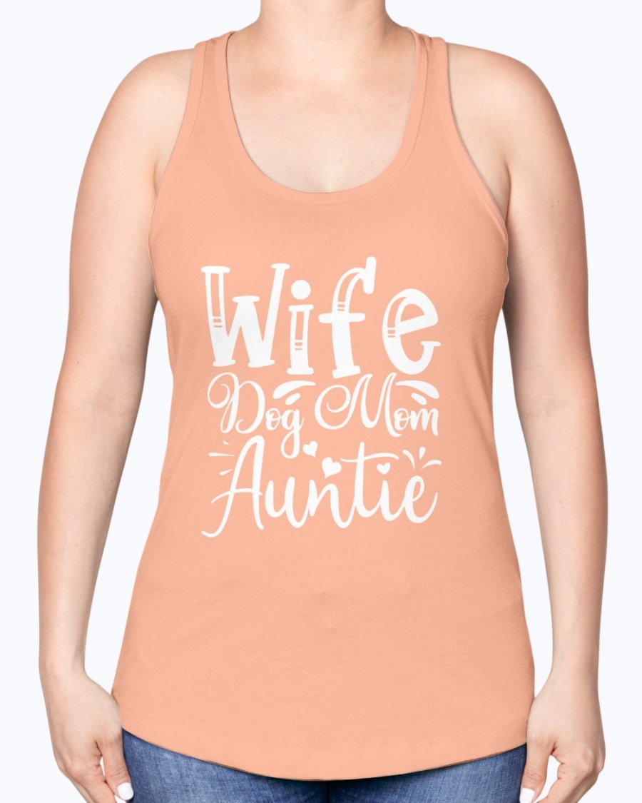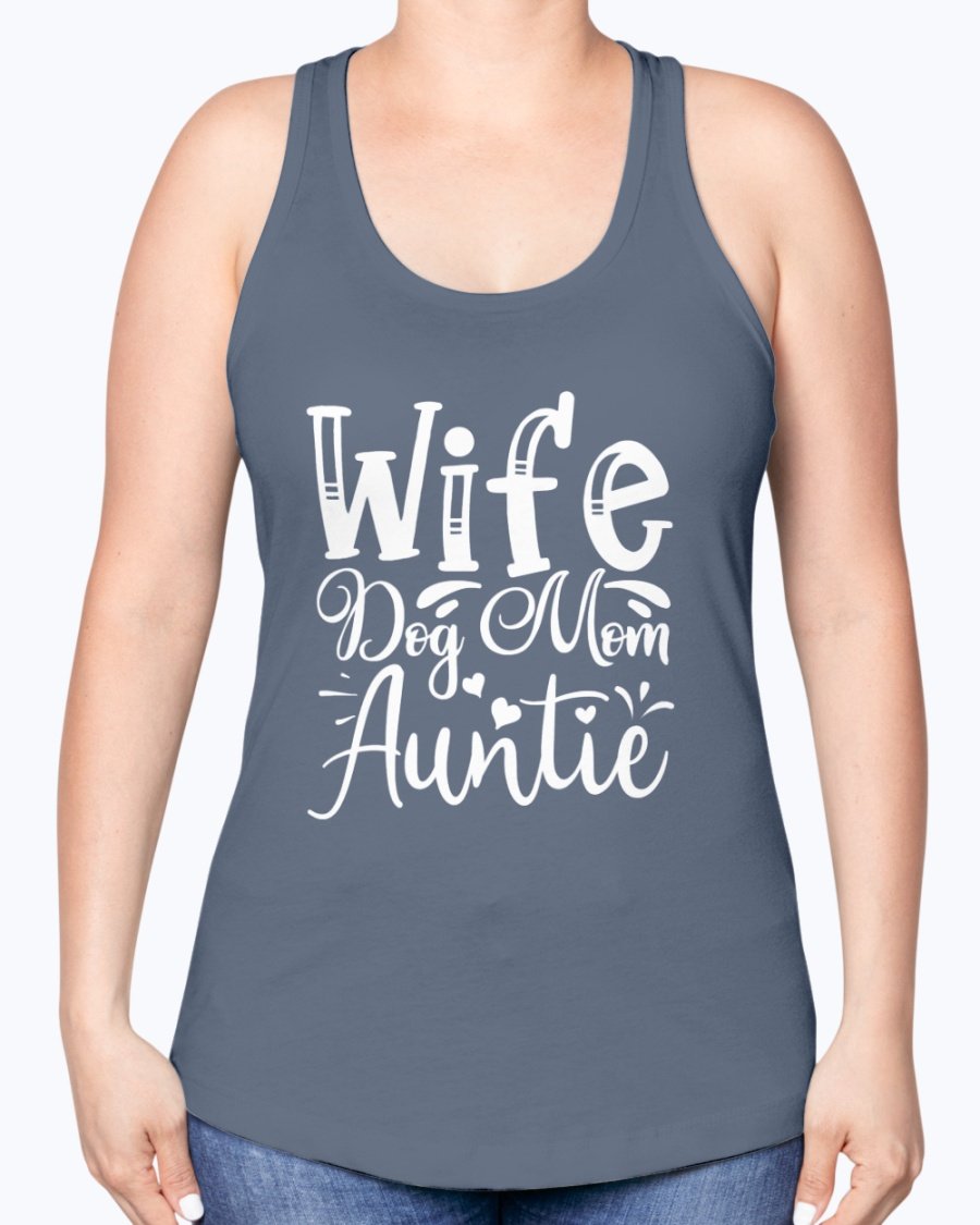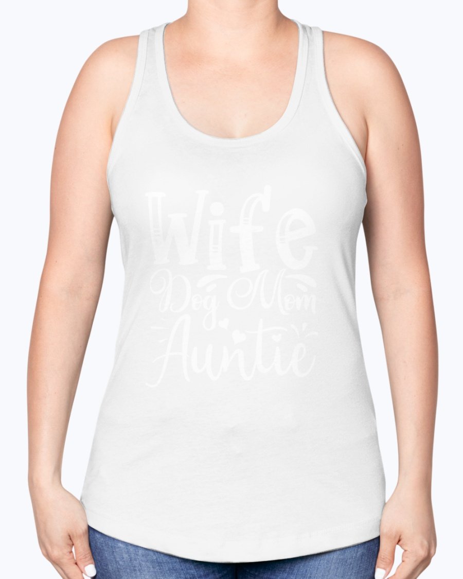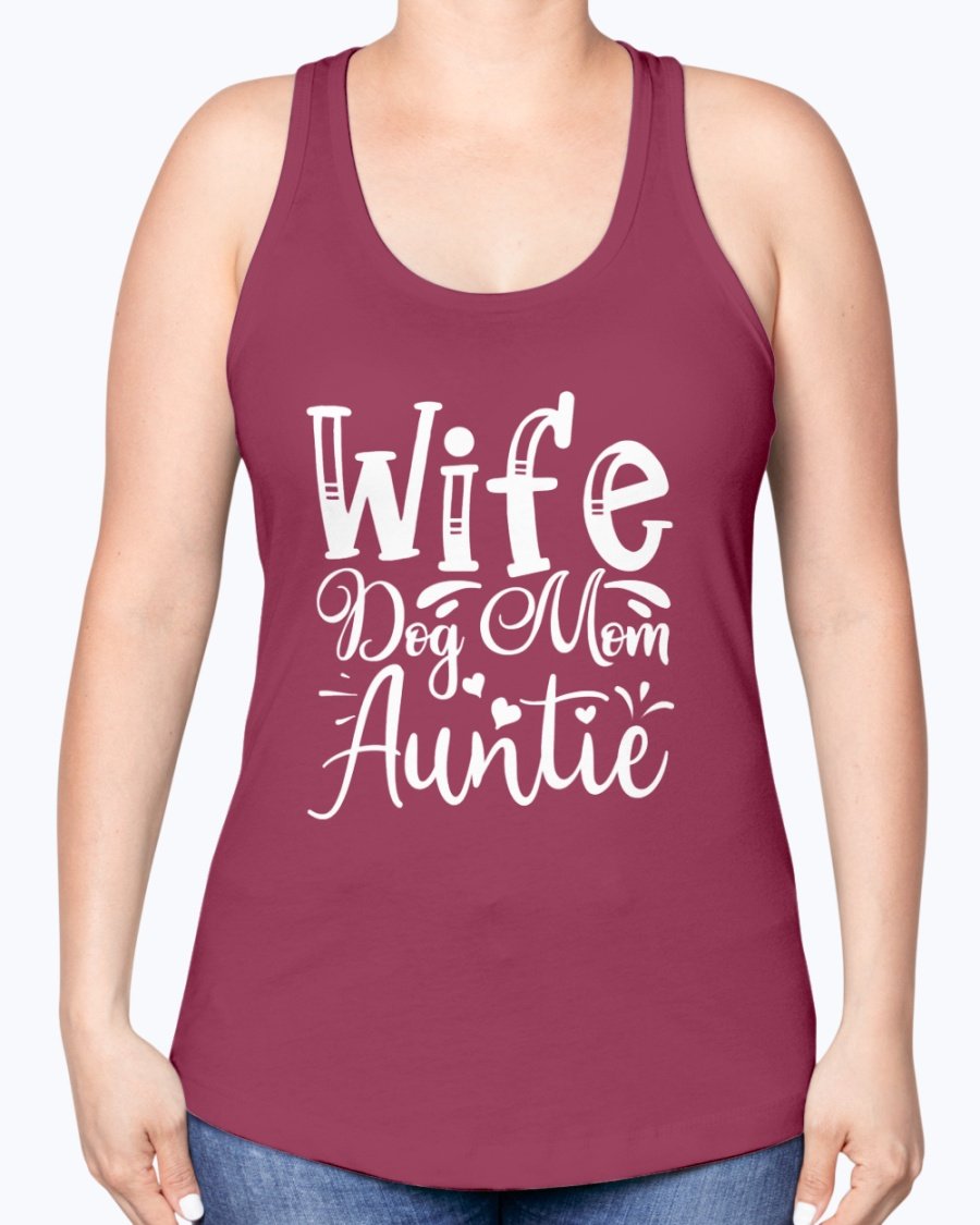 Wife, Dog Mom, Auntie-- Aunt -Racerback Tank Contoured fit, machine washable, cotton blend