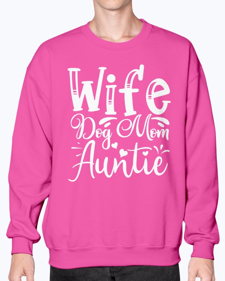 Wife, Dog Mom, Auntie-- Aunt-Sweatshirt - Crew