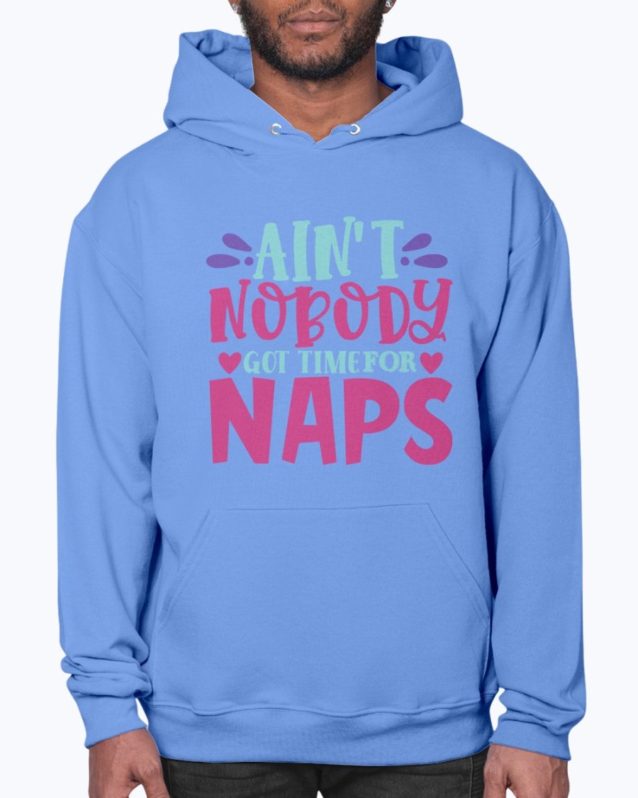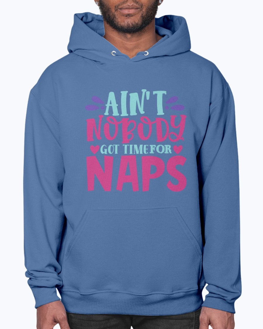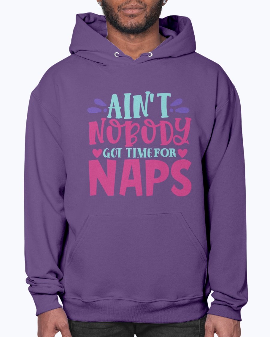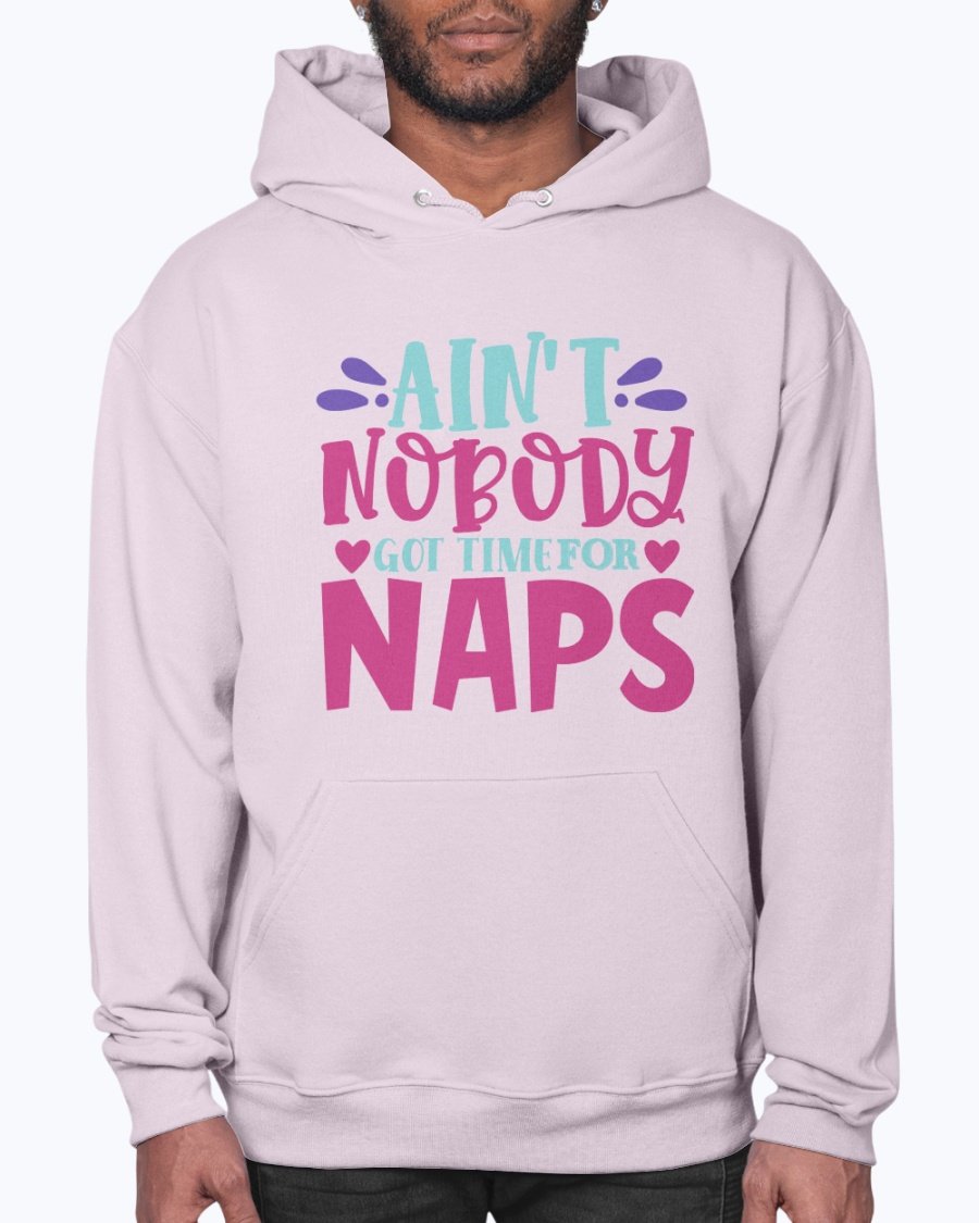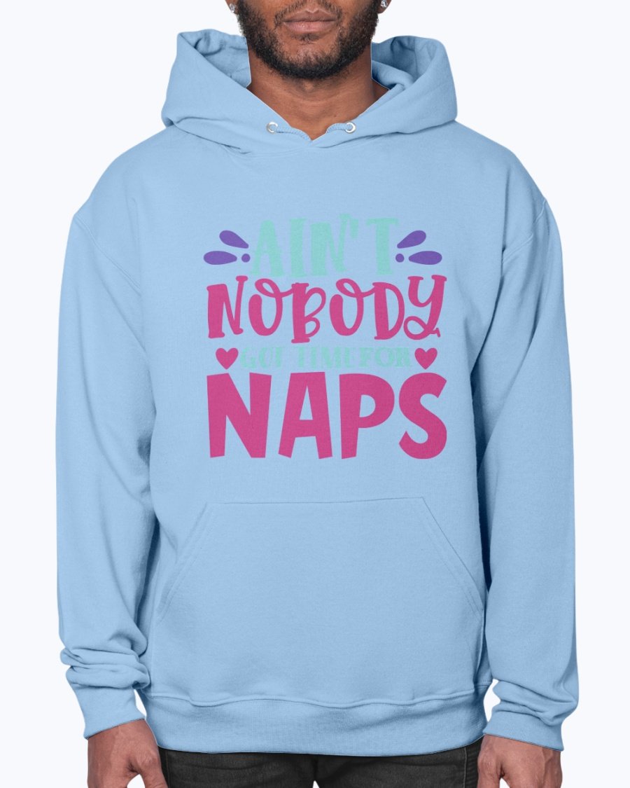 ain't nobody got time naps- baby- baby- hoodie Note: There is a 2 - 4 day creation time, which may delay shipping. Unisex, machine washable, front pouch pocket 8 oz, 50% cotton/50% polyester NuBlendŽ preshrunk fleece Oxford 49% cotton/51% polyester NuBlendŽ pill-resistant fleece High stitch density for a smooth printing...