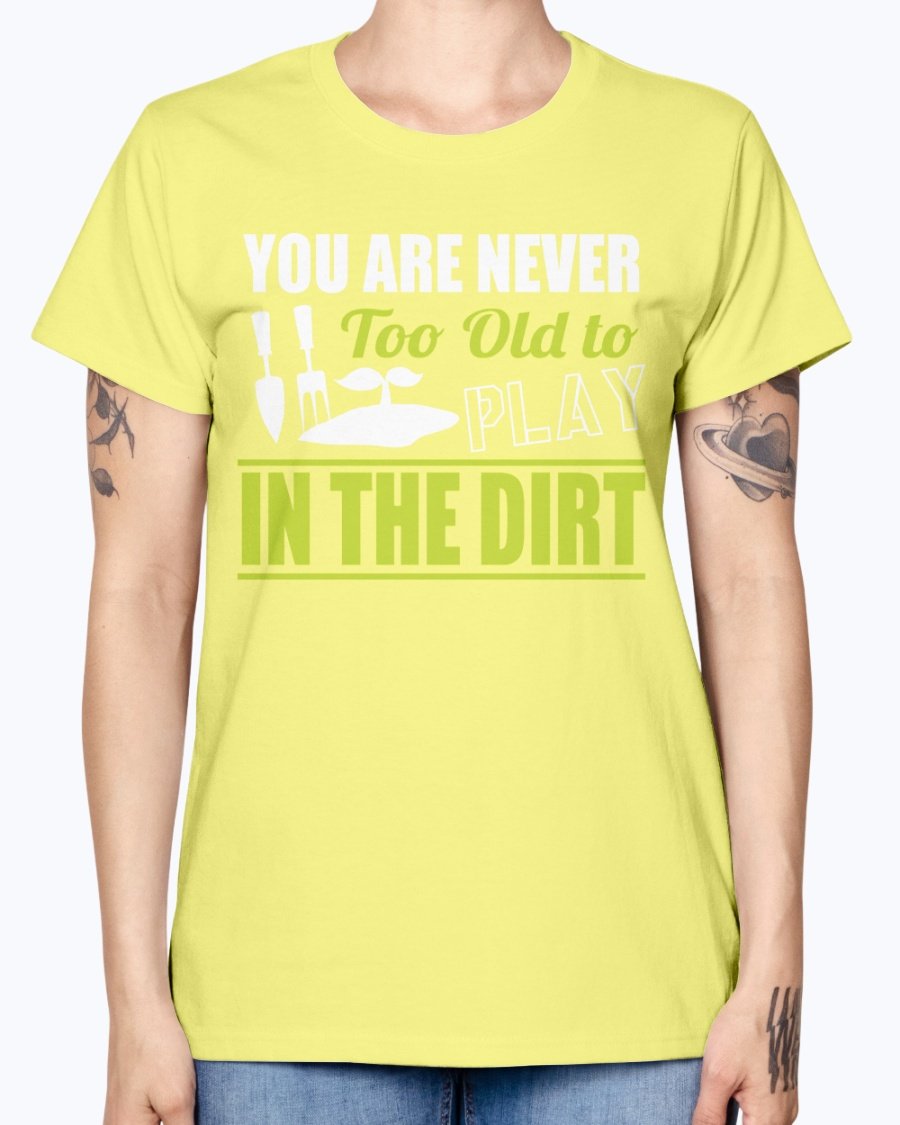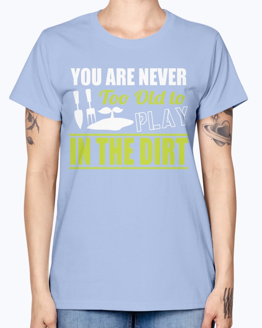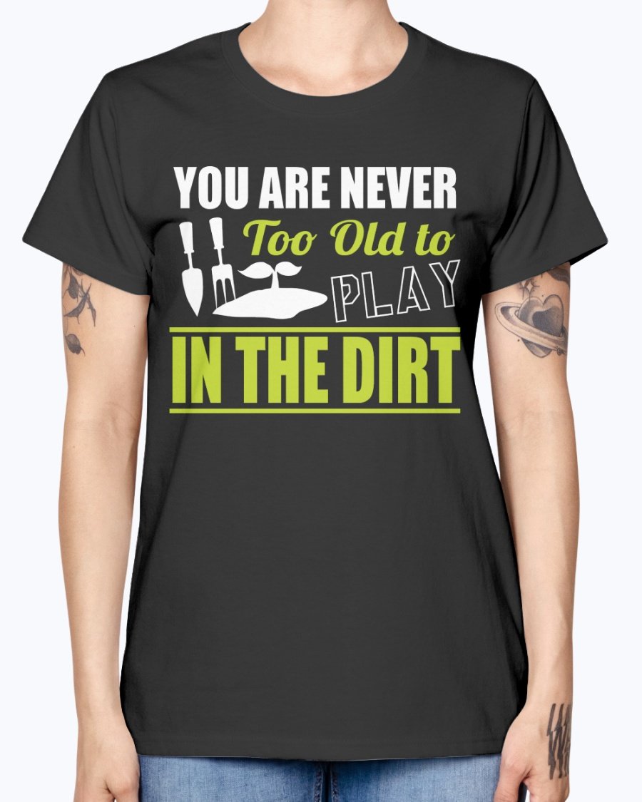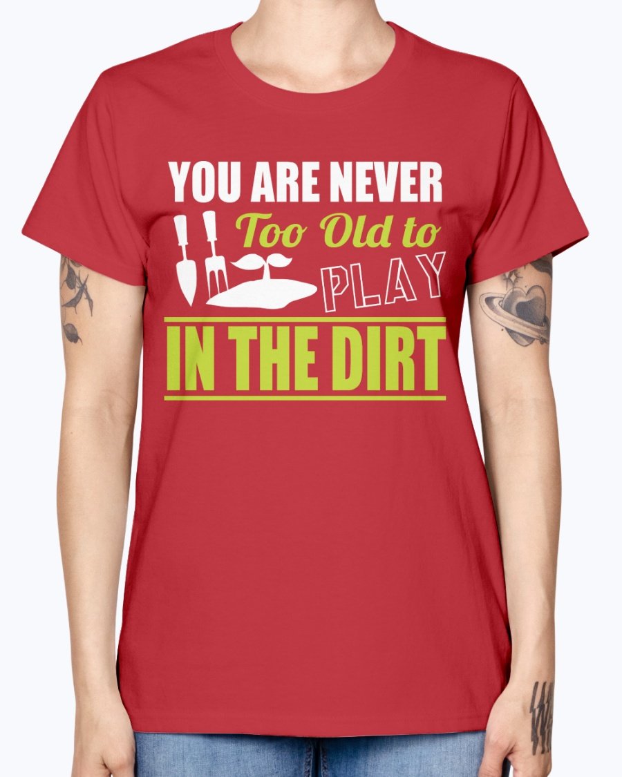 you are never too old to play in the dirt - Gardening- Missy T-Shirt