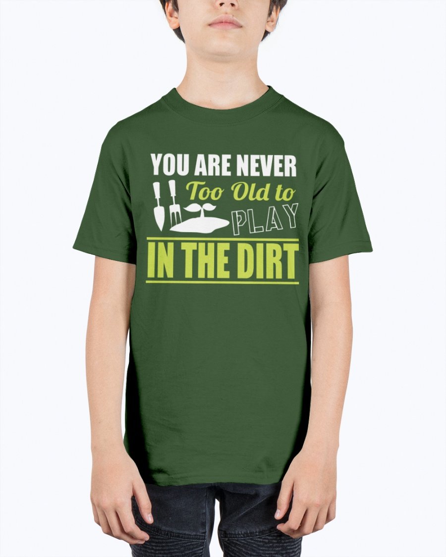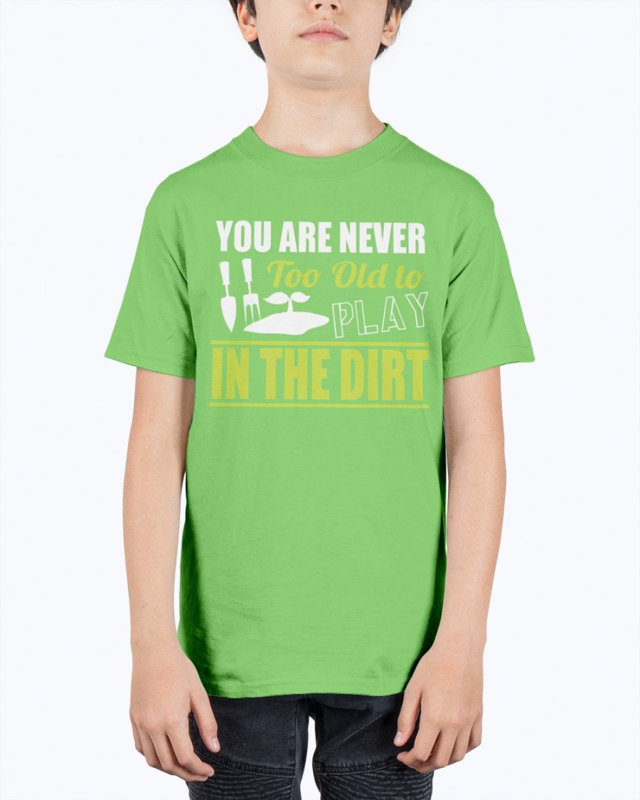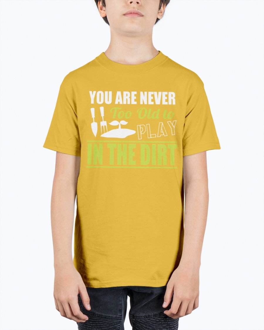 you are never too old to play in the dirt - Gardening- Youth Tee Unisex