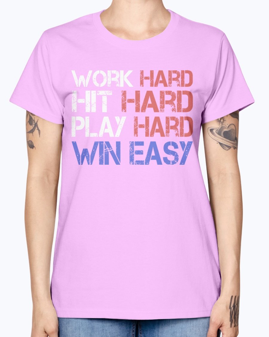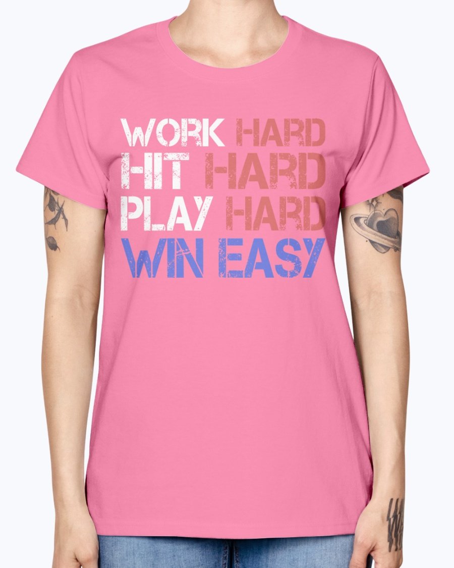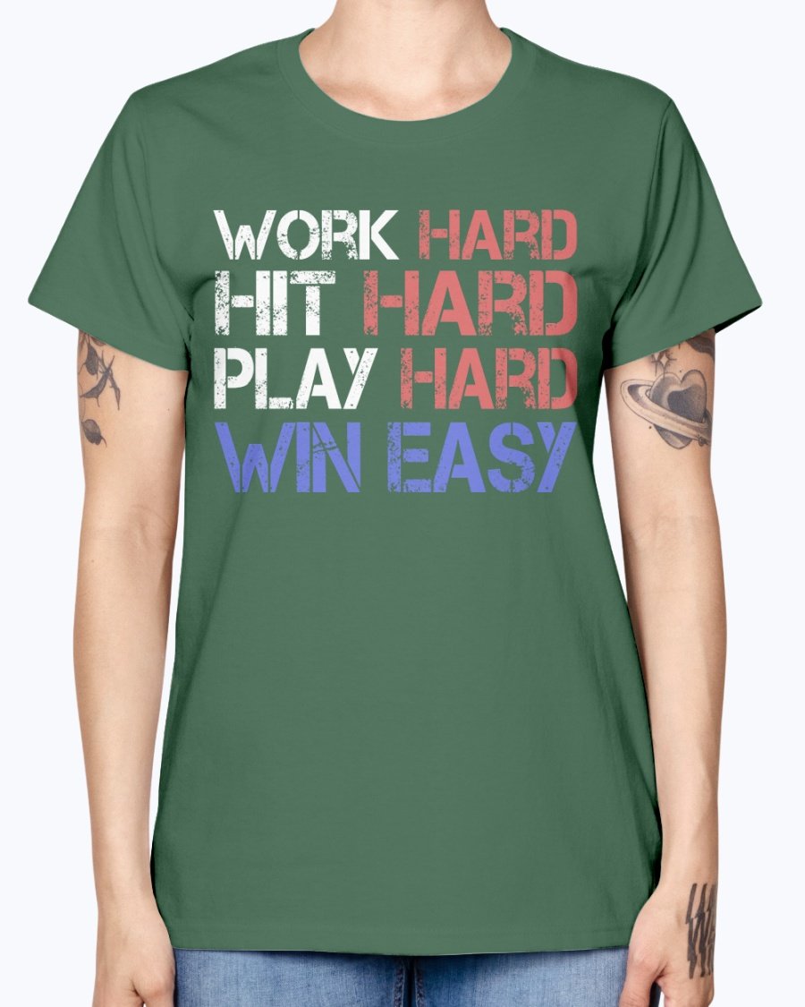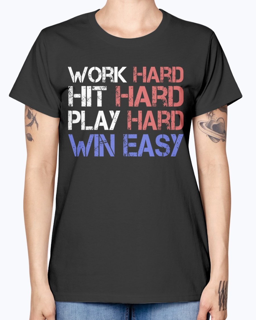 Work, Hit, Play hard, win easy- Sports- Missy T-Shirt