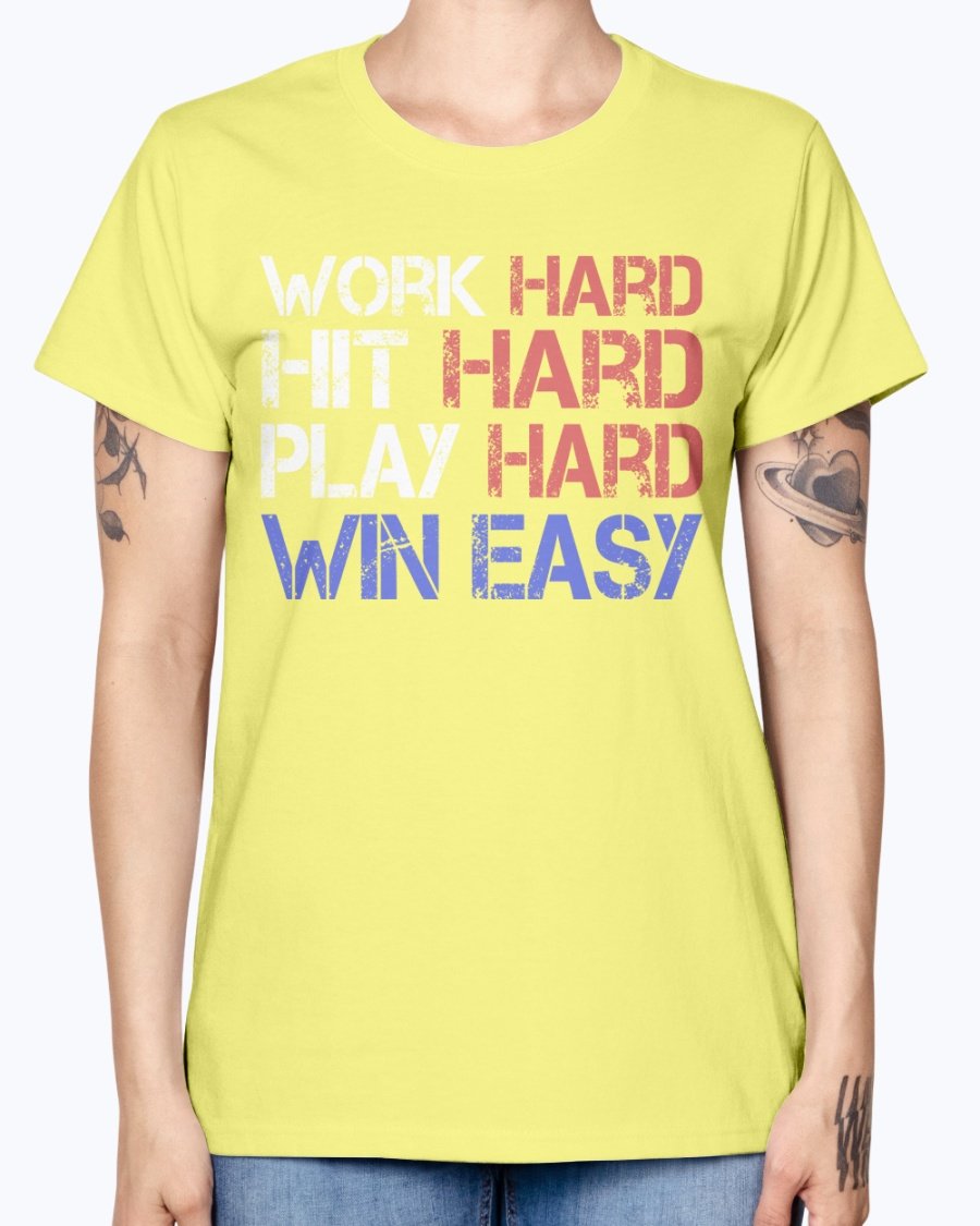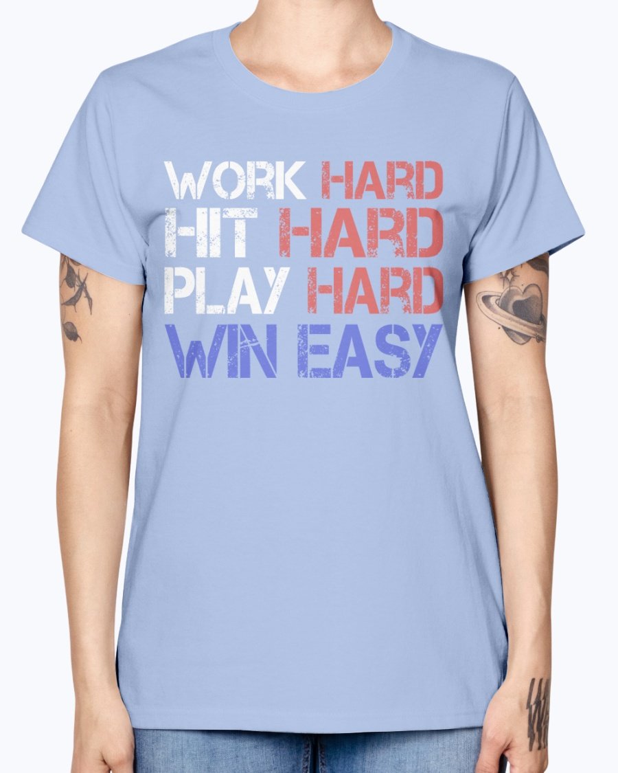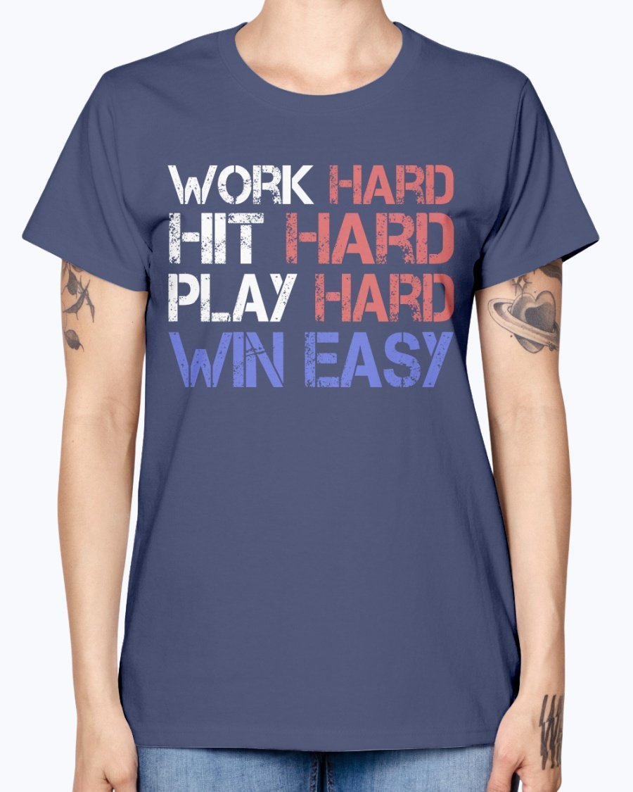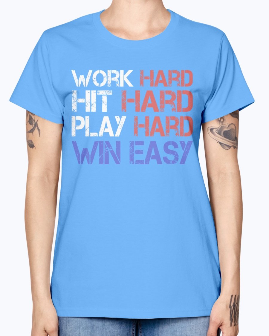Work, Hit, Play hard, win easy- Sports- Missy T-Shirt