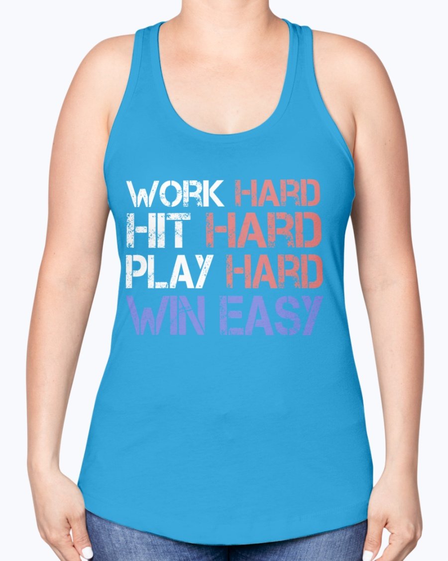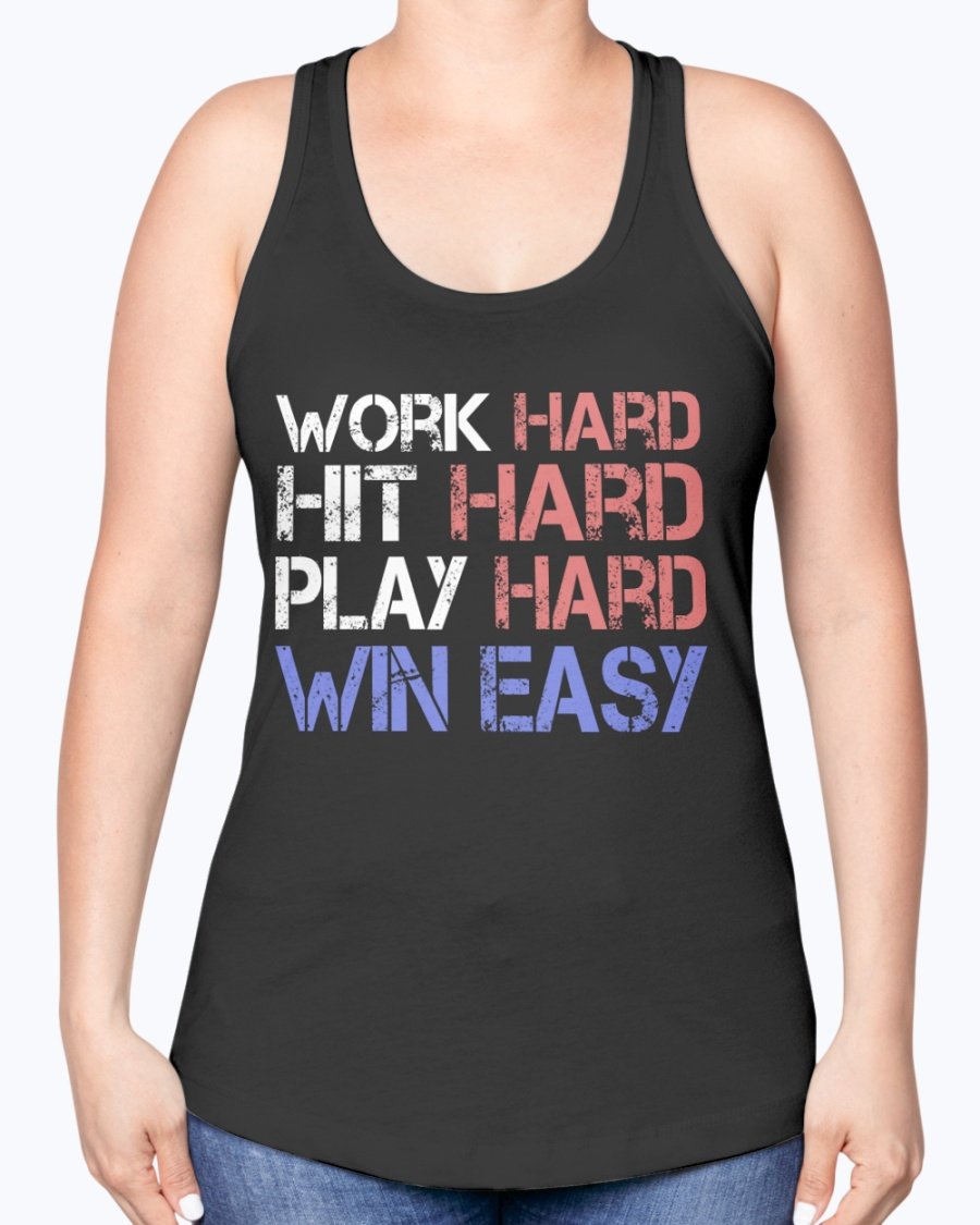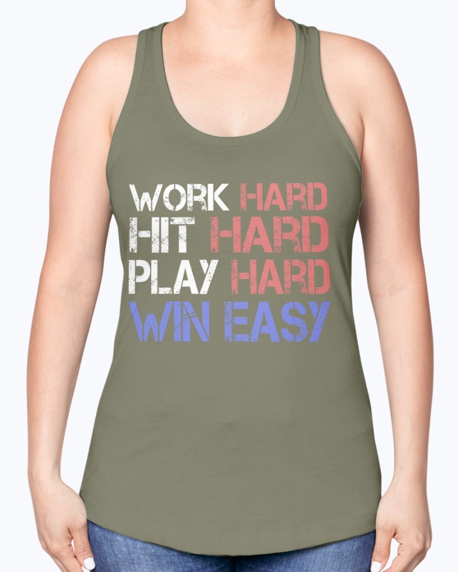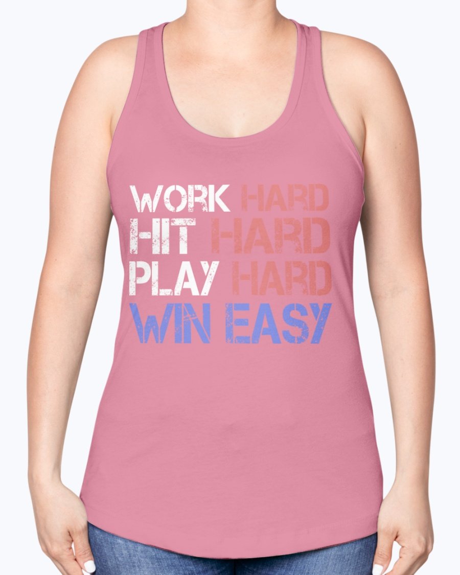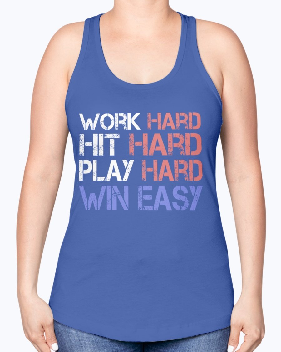 Work, Hit, Play hard, win easy- Sports- Racerback Tank