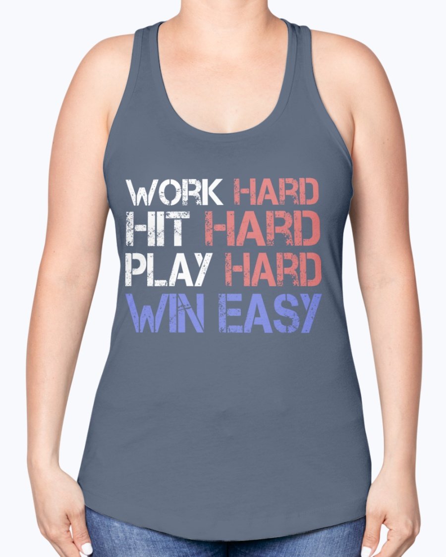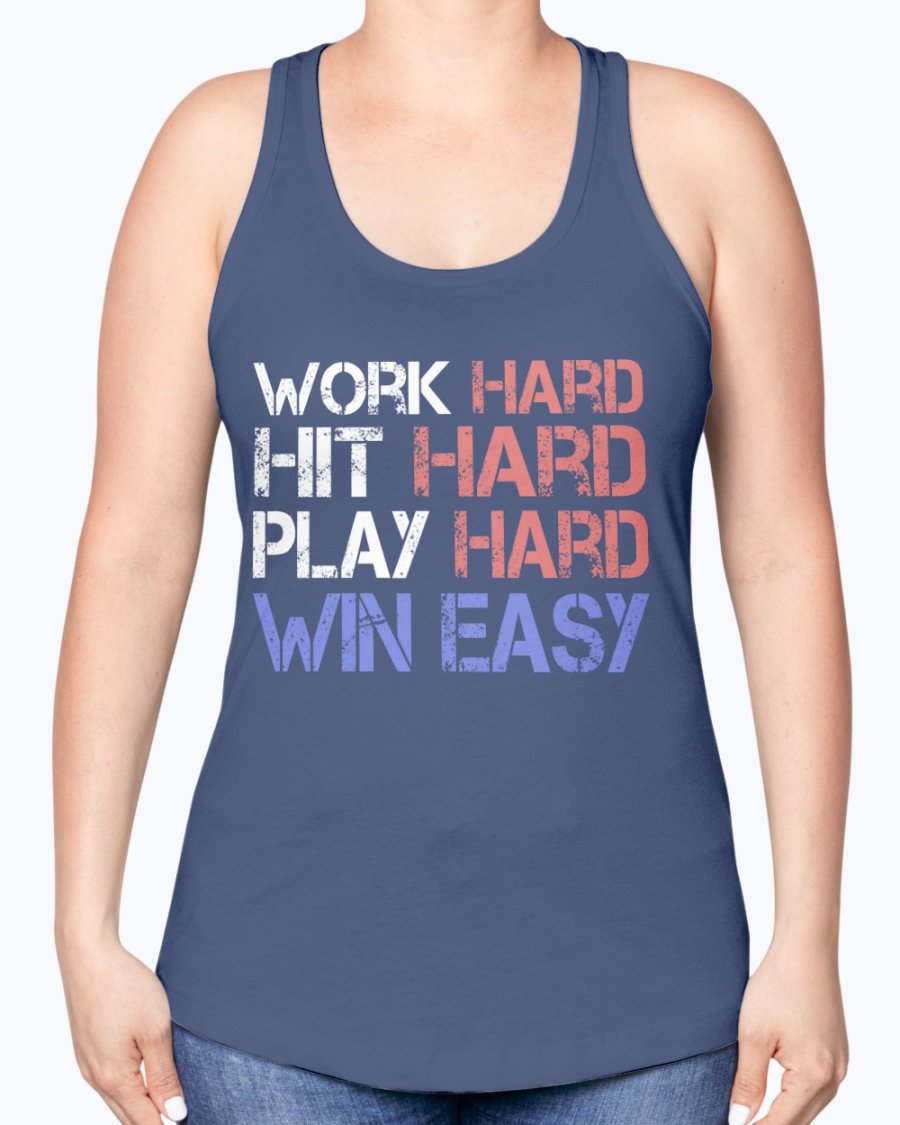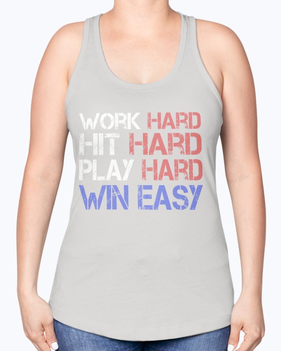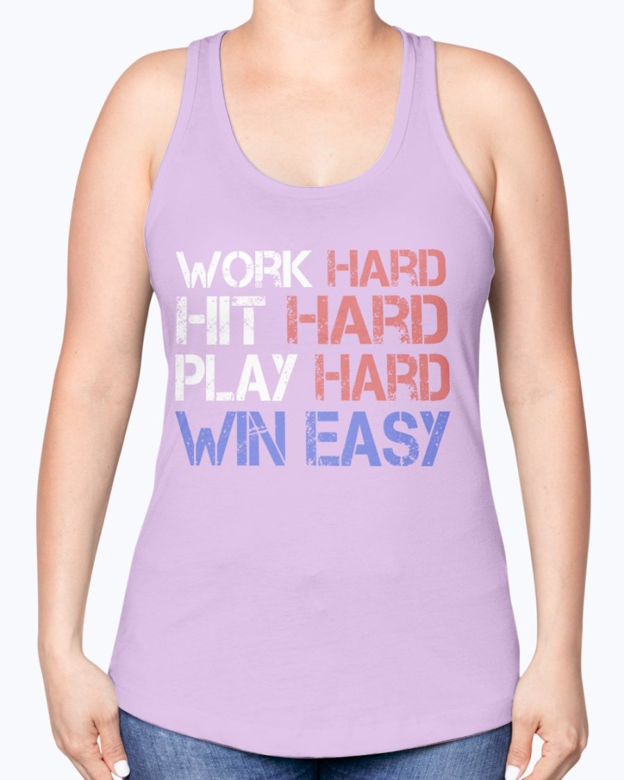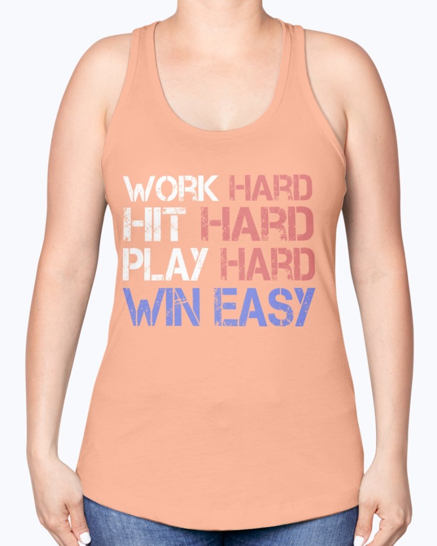 Work, Hit, Play hard, win easy- Sports- Racerback Tank