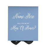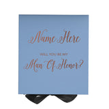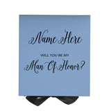 Personalized Will You Be My Man Of Honor Box? Proposal Box Light Blue w/ Bow Blk - No Border